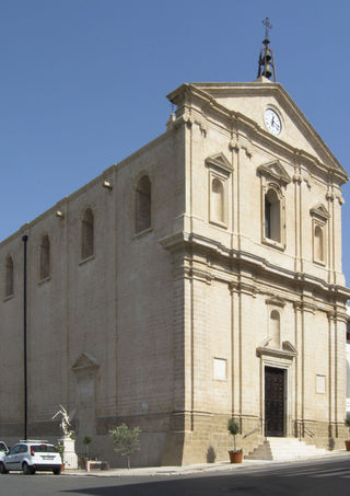 Il prospetto principale è realizzato in pietra locale a vista e si sviluppa su due ordini, scanditi da doppie lesene. Solo nel secondo ordine, queste sono coronate da capitelli ionici. L’architettura è sobria ed essenziale, priva di ornamenti eccessivi.
